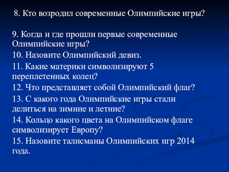 Слайд 208. Кто возродил современные Олимпийские игры?