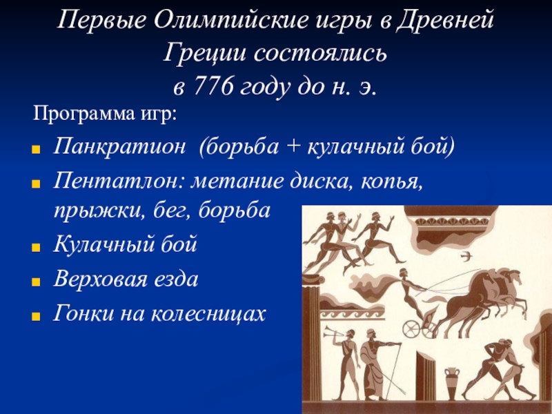 Слайд 6Первые Олимпийские игры в Древней Греции состоялись
