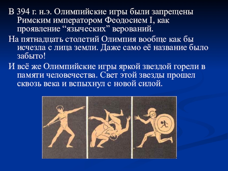 Слайд 9В 394 г. н.э. Олимпийские игры были запрещены Римским императором Феодосием