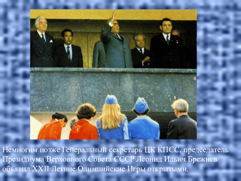 Леонид Ильич Брежнев объявил XXII Летние Олимпийские Игры открытыми.