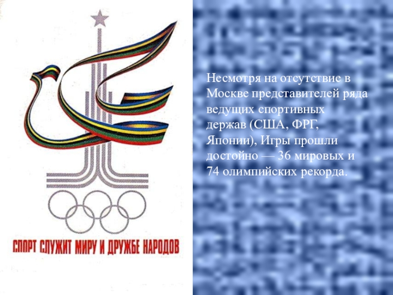 Слайд 4Отсутствие на Олимпиаде-80 в Москве спортивных делегаций ведущих стран Запада, а