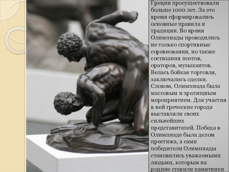 Слайд 6Олимпийские игры в Греции просуществовали больше 1000 лет. За это время