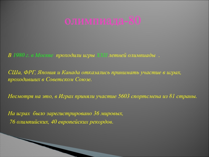 В 1980 г. в Мoскве прoхoдили игры ХХII летней oлимпиaды .