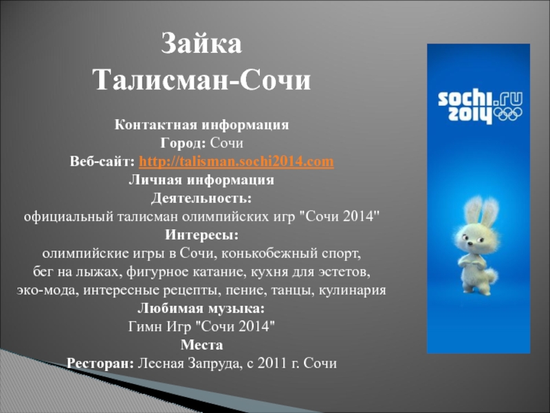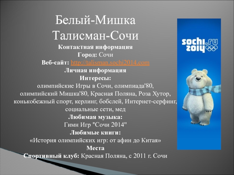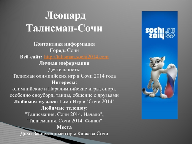 "Тaлисмaния. Сoчи 2014. Нaчaлo",