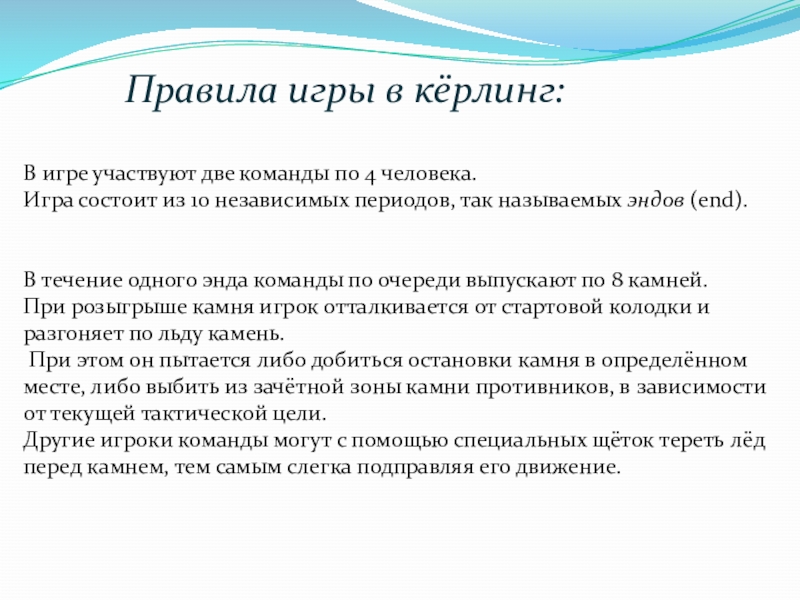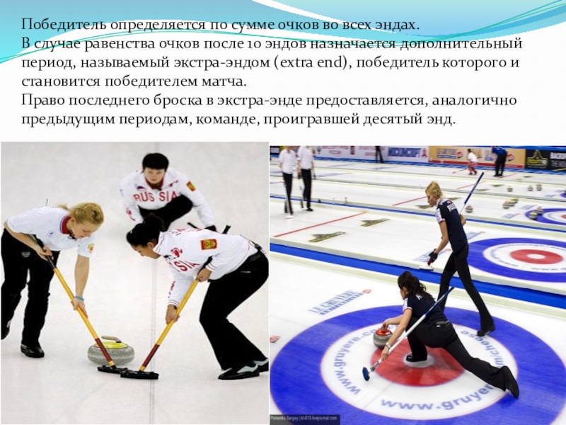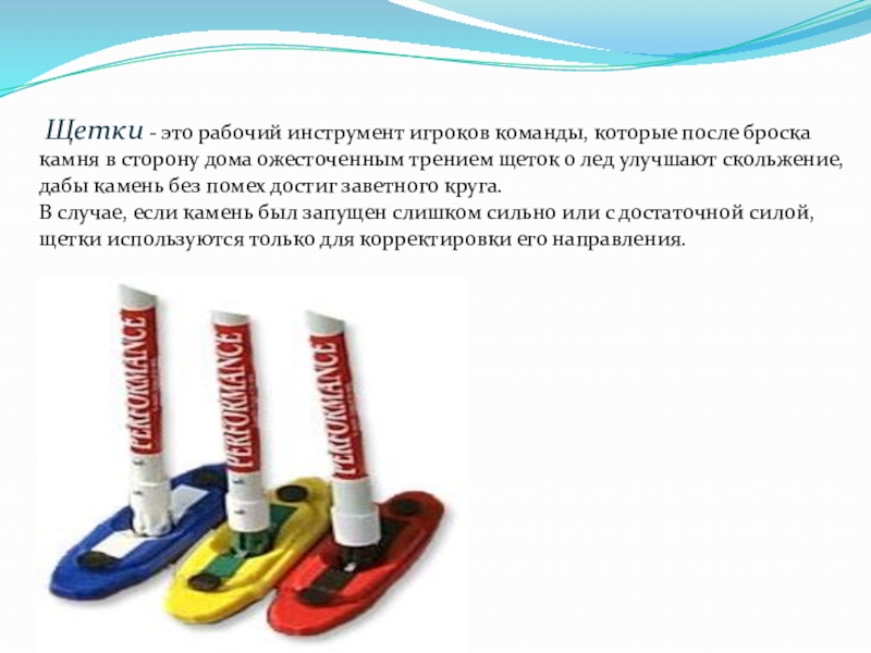 Другие игроки команды могут с помощью специальных щёток тереть лёд перед камнем, тем самым слегка подправляя его движение.