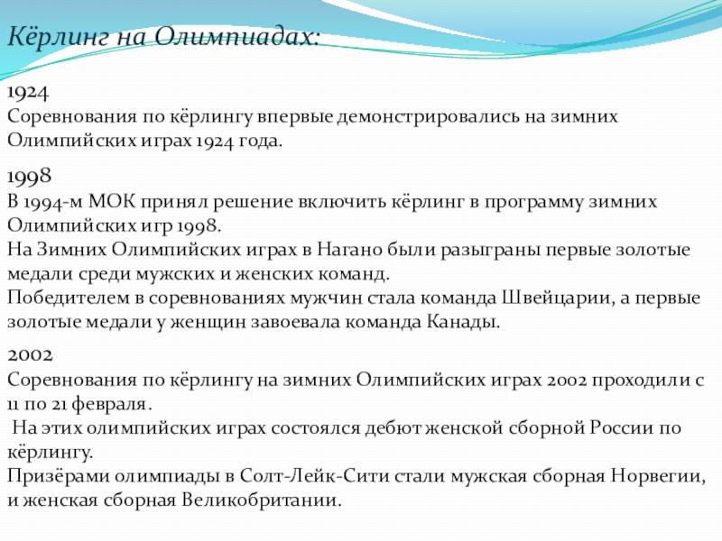 В 1994-м МОК принял решение включить кёрлинг в программу зимних Олимпийских игр 1998.
