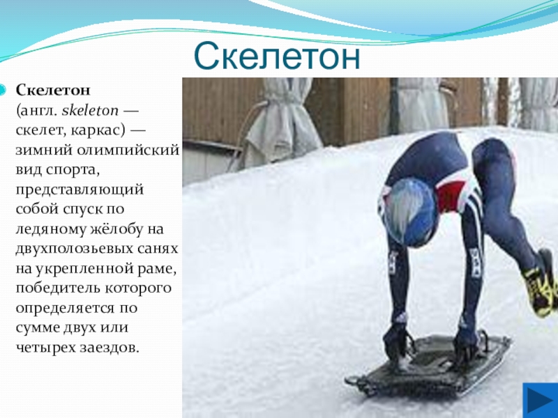 Cкелетон (англ. skeleton — скелет, каркас) — зимний олимпийский вид спорта, представляющий собой спуск