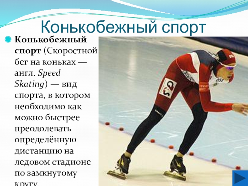 Конькобежный спорт (Скоростной бег на коньках — англ. Speed Skating) — вид спорта,