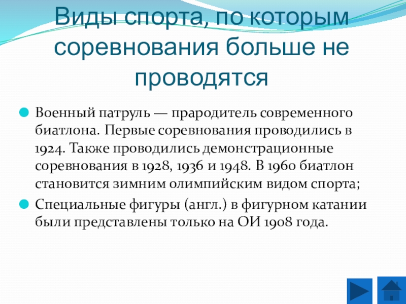 Слайд 21Виды спорта, по которым соревнования больше не проводятся