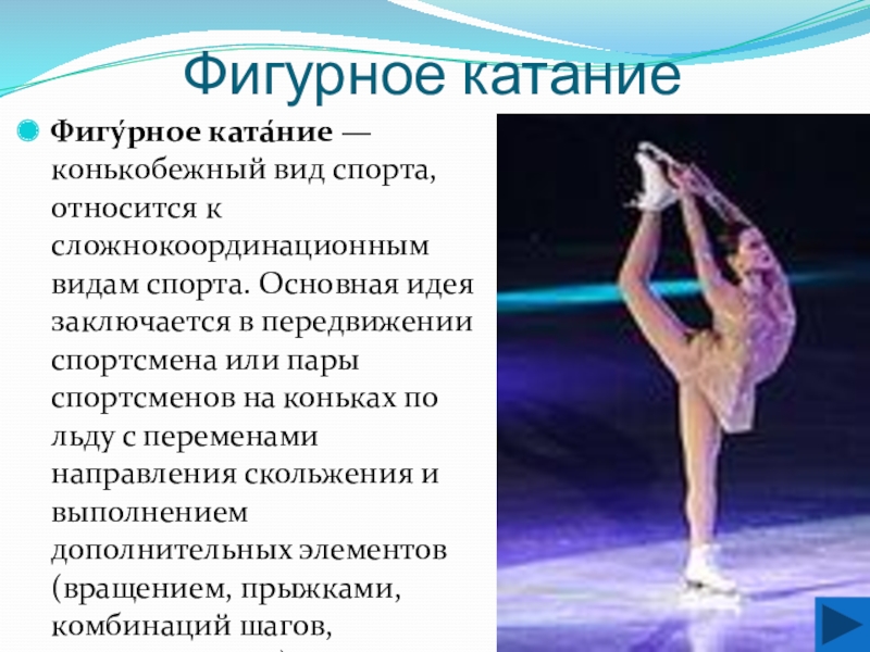 Фигу́рное ката́ние — конькобежный вид спорта, относится к сложнокоординационным видам спорта.