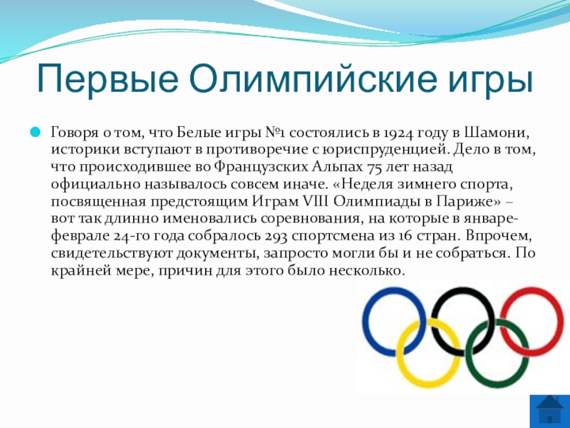 1924 году в Шамони, историки вступают в противоречие с юриспруденцией. Дело в том, что происходившее во Французских Альпах 75 лет назад официально называлось совсем иначе. «Неделя зимнего спорта, посвященная предстоящим Играм VIII Олимпиады в Париже» – вот так длинно именовались соревнования, на которые в январе-феврале 24-го года собралось 293 спортсмена из 16 стран. Впрочем, свидетельствуют документы, запросто могли бы и не собраться. По крайней мере, причин для этого было несколько.