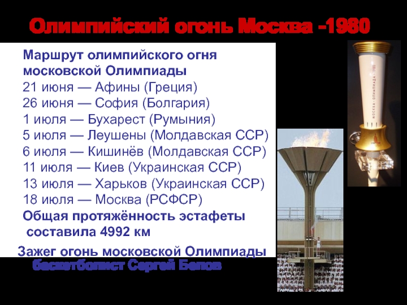 Зажег огонь московской Олимпиады баскетболист Сергей Белов