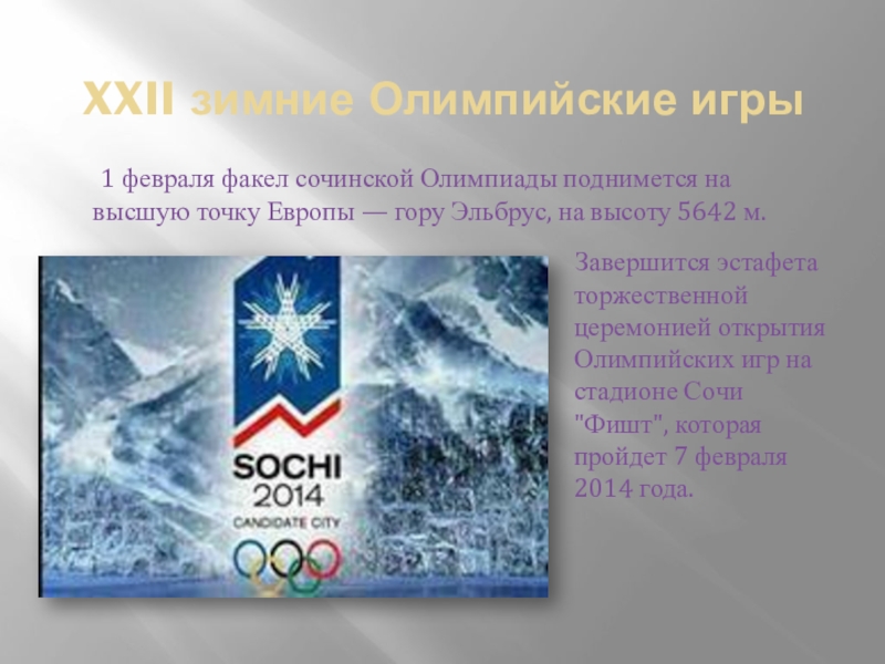 Слайд 19XXII зимние Олимпийские игры