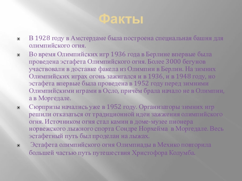 Эстафета олимпийского огня Олимпиады в Мехико повторила большей частью путь путешествия Христофора Колумба.