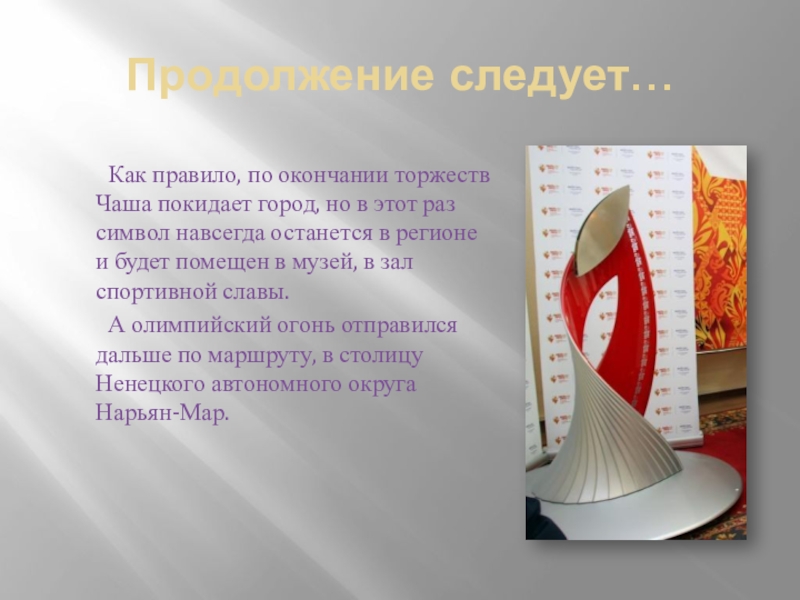 Чаша покидает город, но в этот раз символ навсегда останется в регионе и будет помещен в музей, в зал спортивной славы.