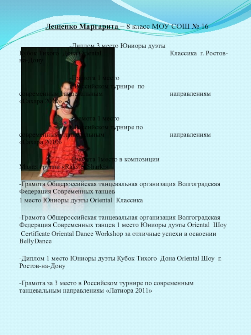 Слайд 49Лещенко Маргарита – 8 класс МОУ СОШ № 16