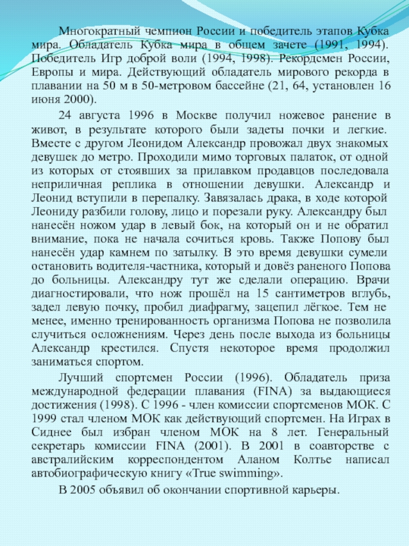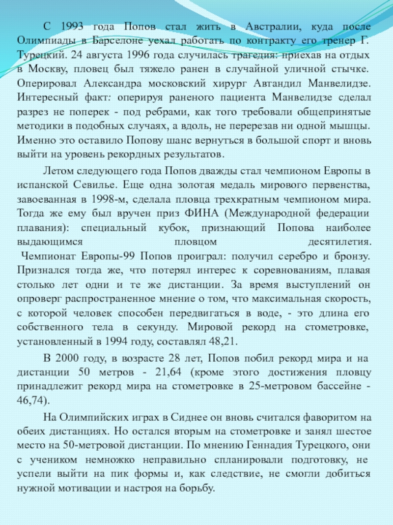Слайд 8 В конце 1999 года Алексей Петров занимает пятое место на Чемпионате