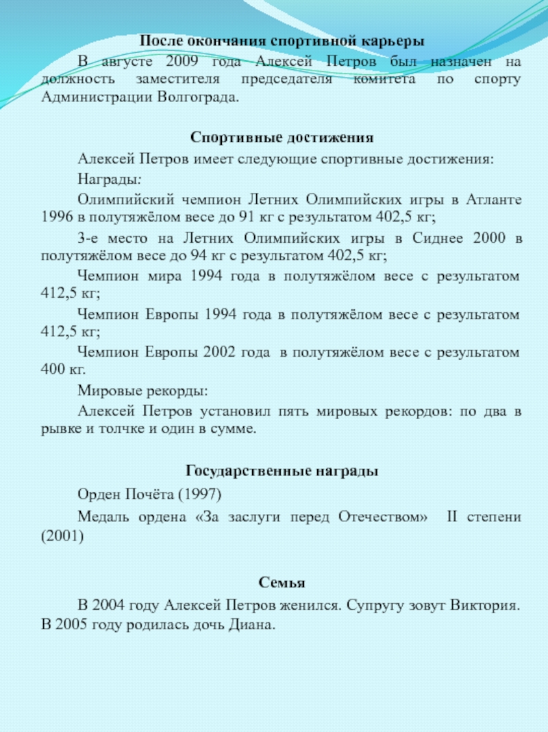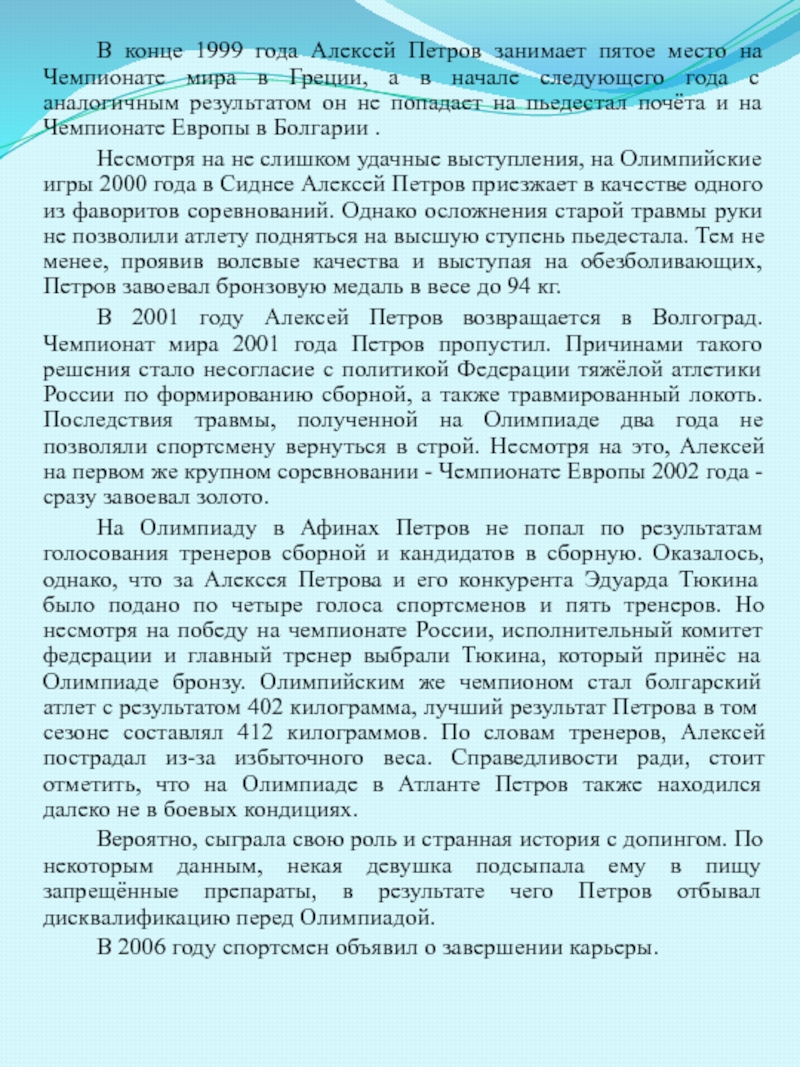 тяжелой атлетике Алексей Петров.