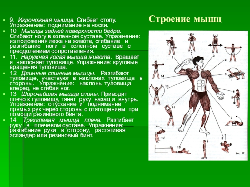 6. Мышцы предплечья. Сгибают и разгибают пальцы. Упражнение: накручивание на палку шнура с грузом на конце.