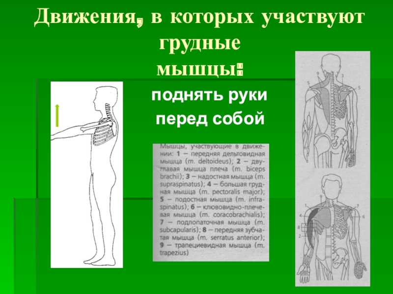 4. Дельтовидная мышца. Участвует в поднимании рук вперед, в стороны, назад. Упражнение: поднимание прямых рук в стороны.