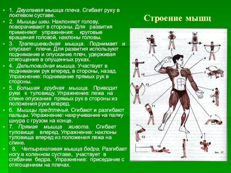 1. Двуглавая мышца плеча. Сгибает руку в локтевом суставе.