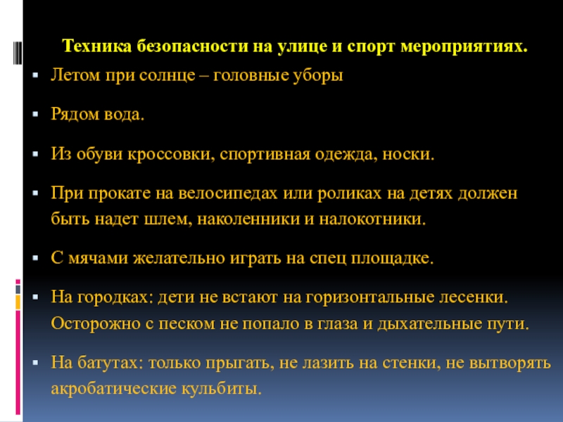 Слайд 5Техника безопасности на улице и спорт мероприятиях.