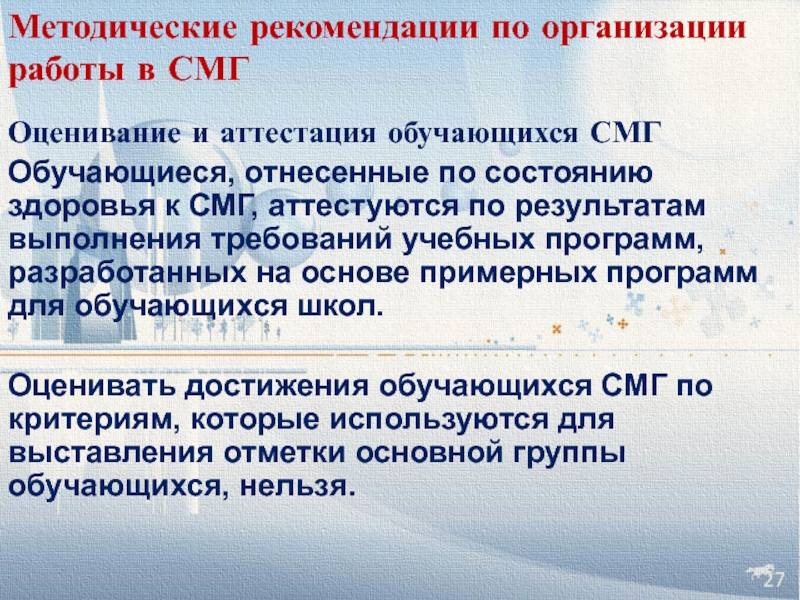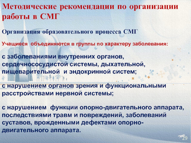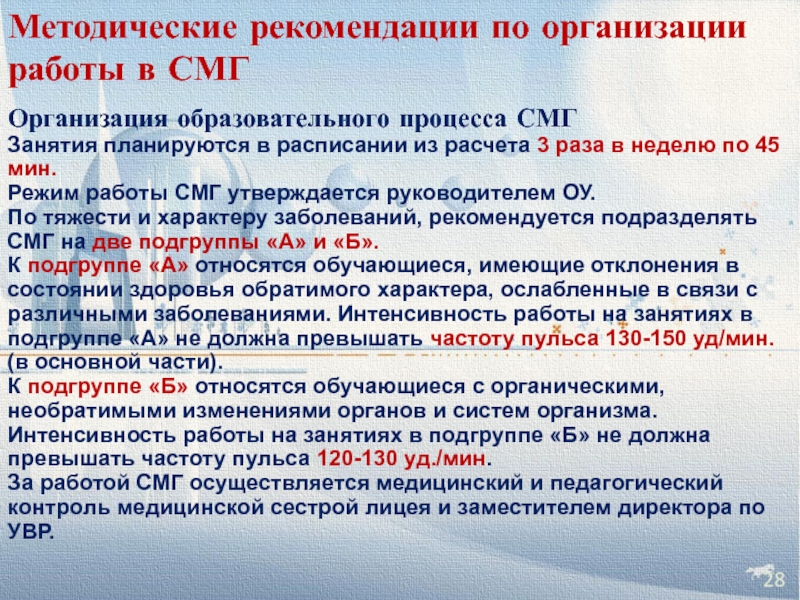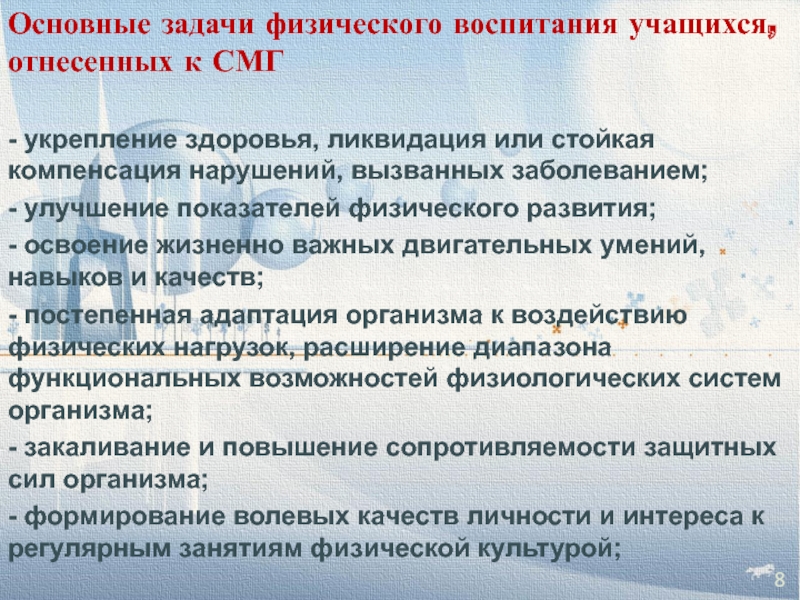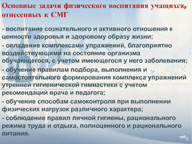 Основные задачи физического воспитания учащихся, отнесенных к СМГ