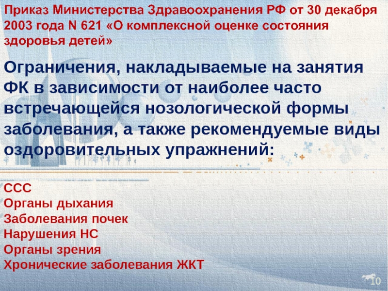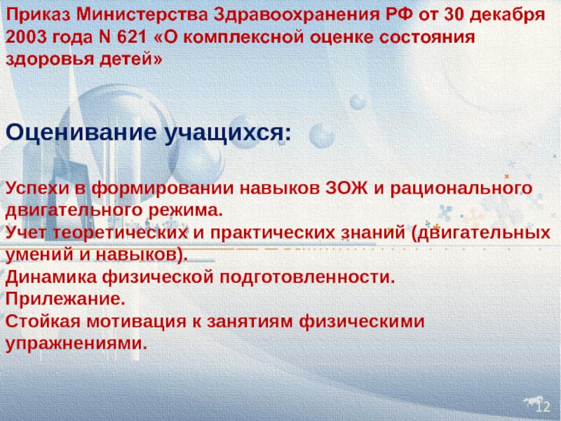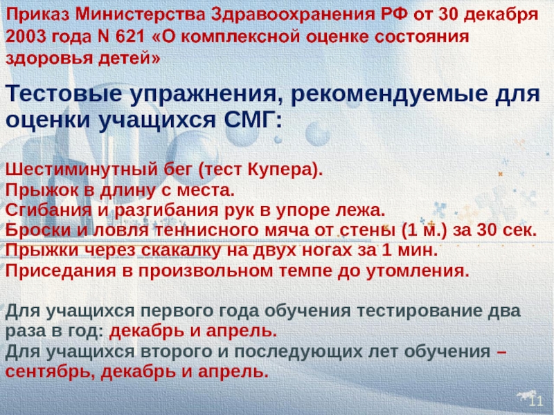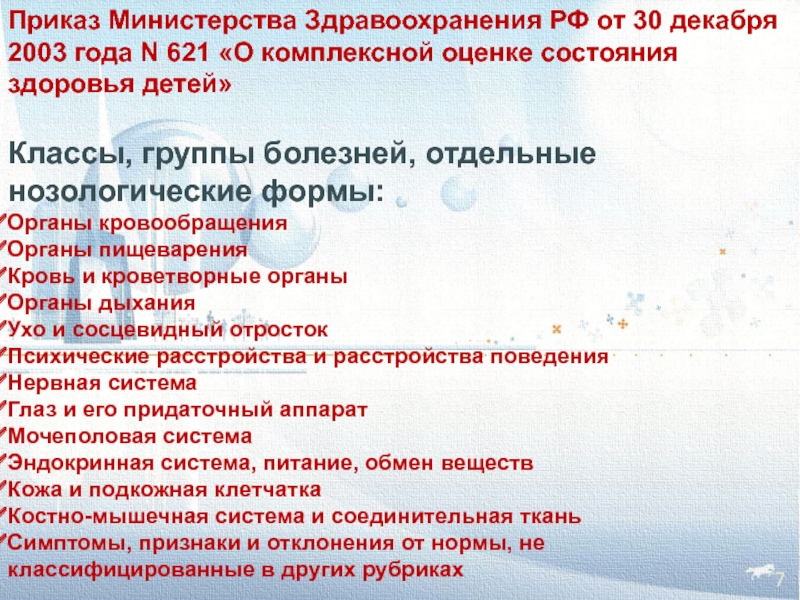 Приказ Министерства Здравоохранения РФ от 30 декабря 2003 года N 621 «О комплексной оценке состояния здоровья детей»