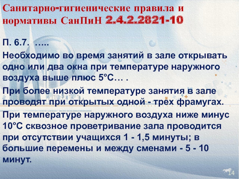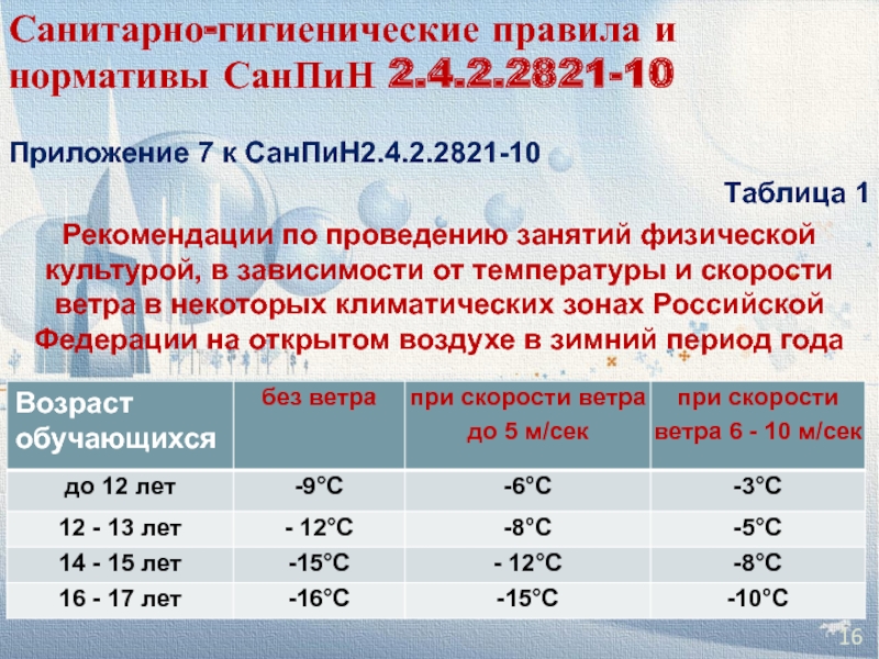 Санитарно-гигиенические правила и нормативы СанПиН 2.4.2.2821-10