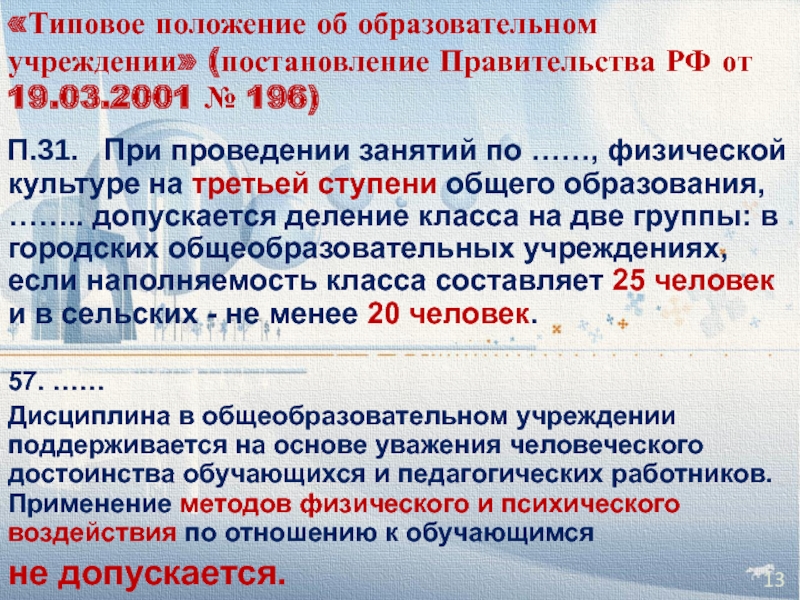 «Типовое положение об образовательном учреждении» (постановление Правительства РФ от 19.03.2001 № 196)