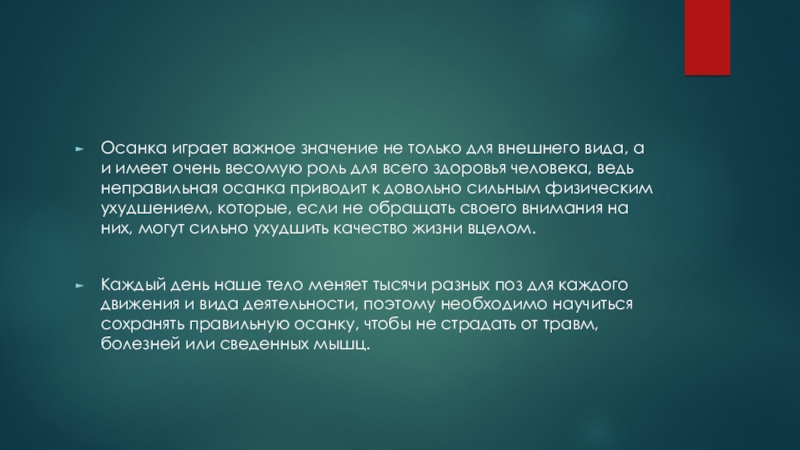 Слайд 3Осанка играет важное значение не только для внешнего вида, а и