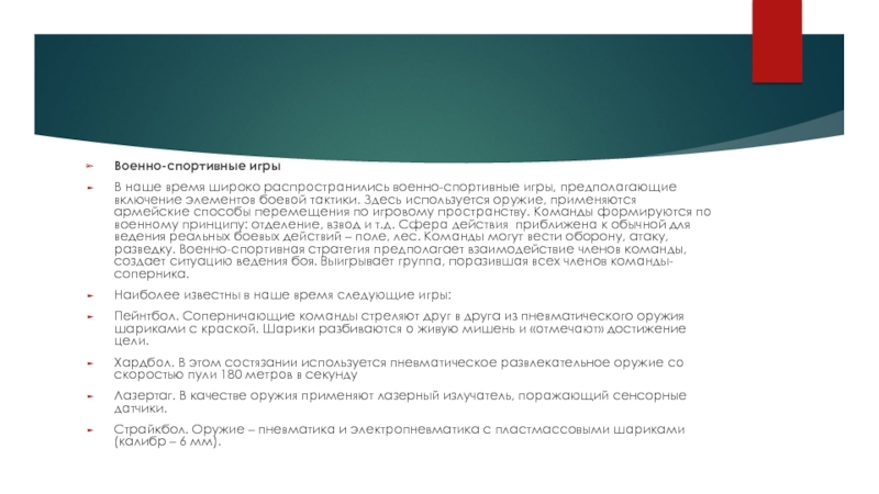 В наше время широко распространились военно-спортивные игры, предполагающие включение элементов