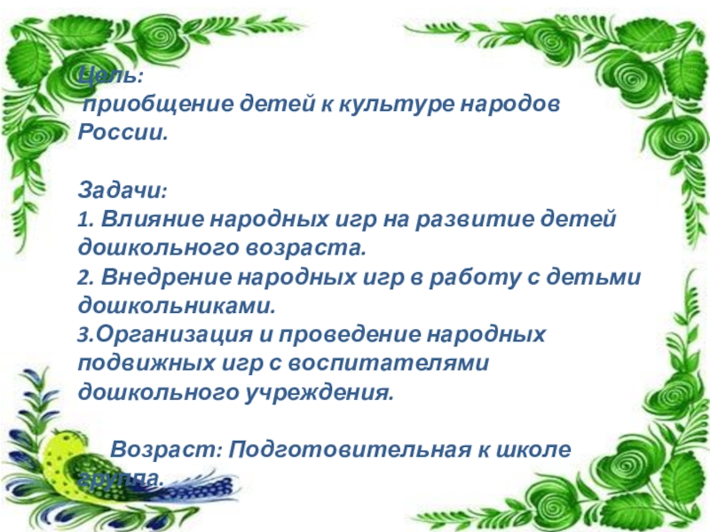 2. Внедрение народных игр в работу с детьми дошкольниками.