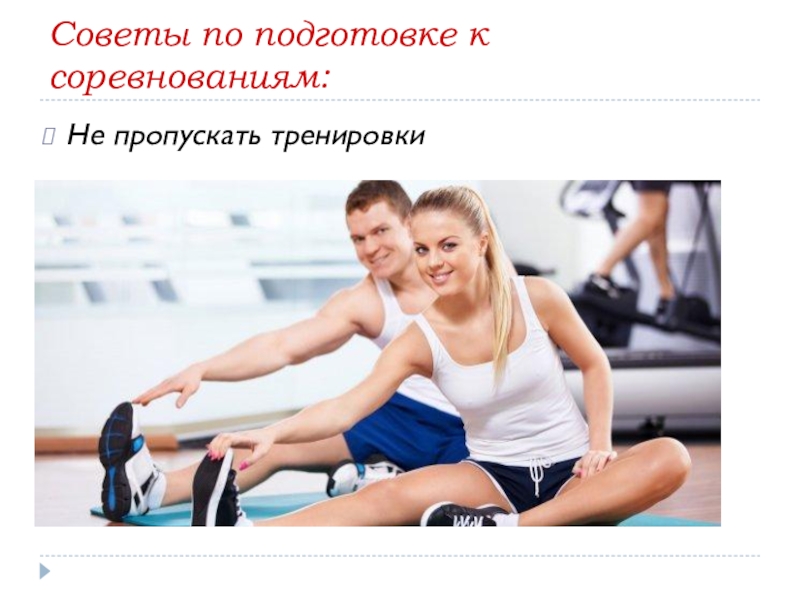 Советы по подготовке к соревнованиям:Не пропускать тренировки