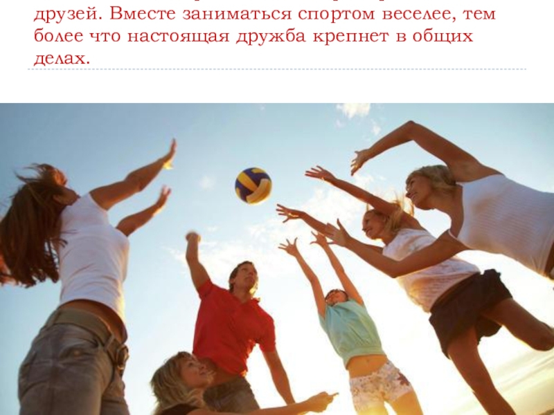 Слайд 15Отличная идея пригласить на тренировки своих друзей. Вместе заниматься спортом веселее,