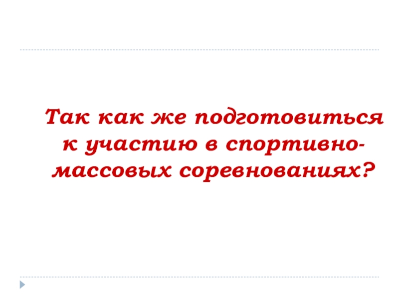 Слайд 9Так как же подготовиться к участию в спортивно-массовых соревнованиях?