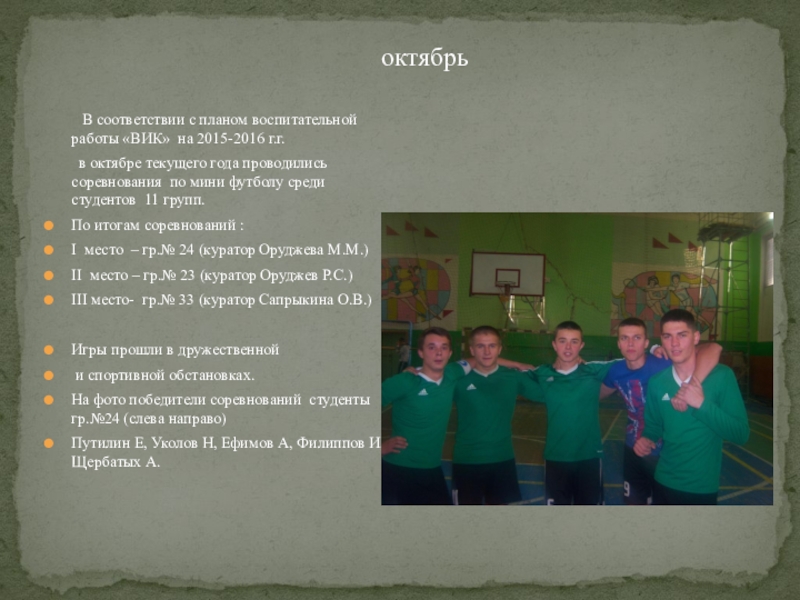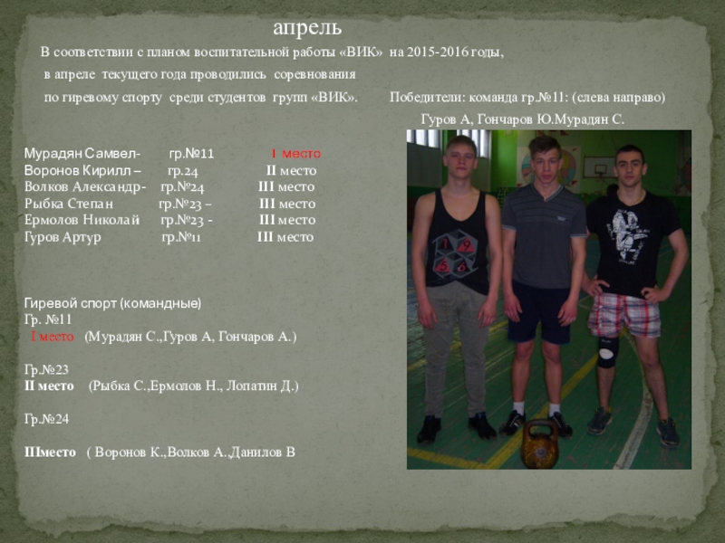 I место (Мурадян С.,Гуров А, Гончаров А.)