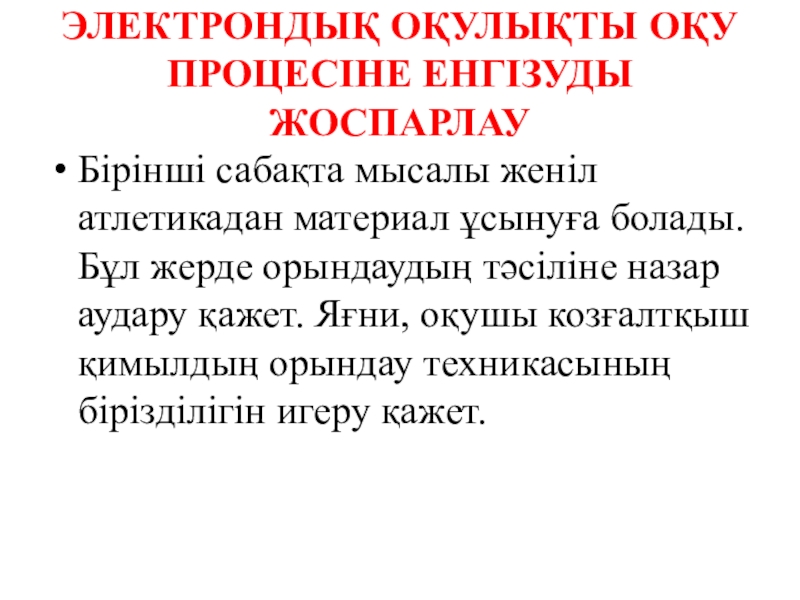 Электрондық оқулықты жүзеге асыру барысында дене шынықтыру мұғалімінде