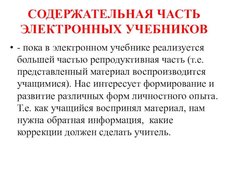 Слайд 28СОДЕРЖАТЕЛЬНАЯ ЧАСТЬ ЭЛЕКТРОННЫХ УЧЕБНИКОВ