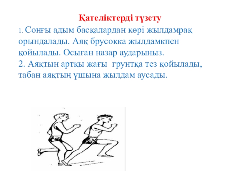 2. Аяқтын артқы жағы грунтқа тез қойылады, табан аяқтың үшына жылдам аусады.