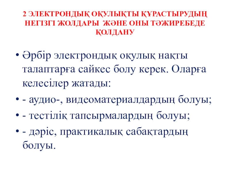 2 ЭЛЕКТРОНДЫҚ ОҚУЛЫҚТЫ ҚҰРАСТЫРУДЫҢ НЕГІЗГІ ЖОЛДАРЫ ЖӘНЕ ОНЫ ТӘЖИРЕБЕДЕ ҚОЛДАНУ
