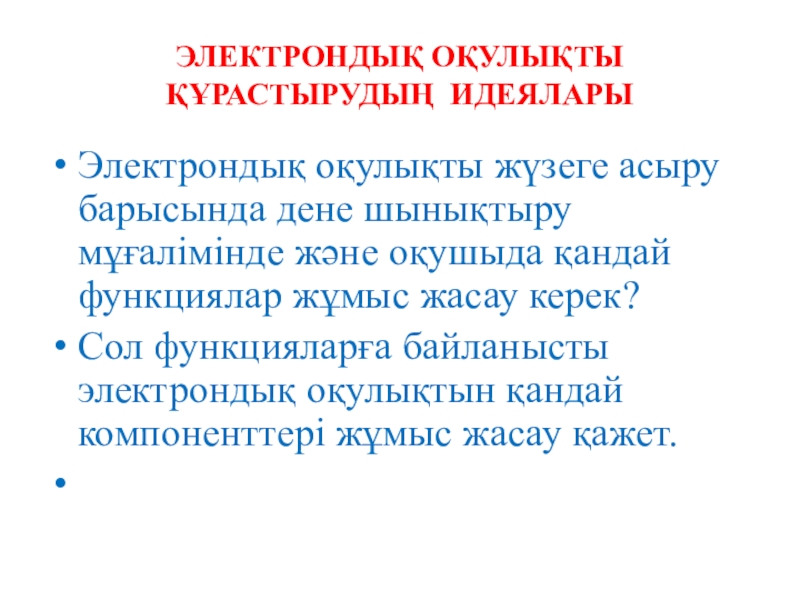 Слайд 7ЭЛЕКТРОНДЫҚ ОҚУЛЫҚТЫ ҚҰРАСТЫРУДЫҢ ИДЕЯЛАРЫ