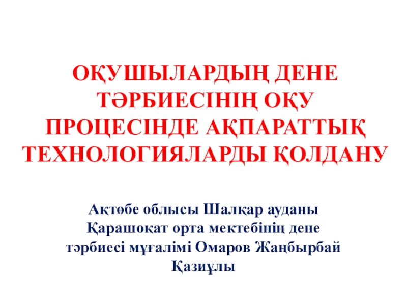 ОҚУШЫЛАРДЫҢ ДЕНЕ ТӘРБИЕСІНІҢ ОҚУ ПРОЦЕСІНДЕ АҚПАРАТТЫҚ ТЕХНОЛОГИЯЛАРДЫ ҚОЛДАНУ