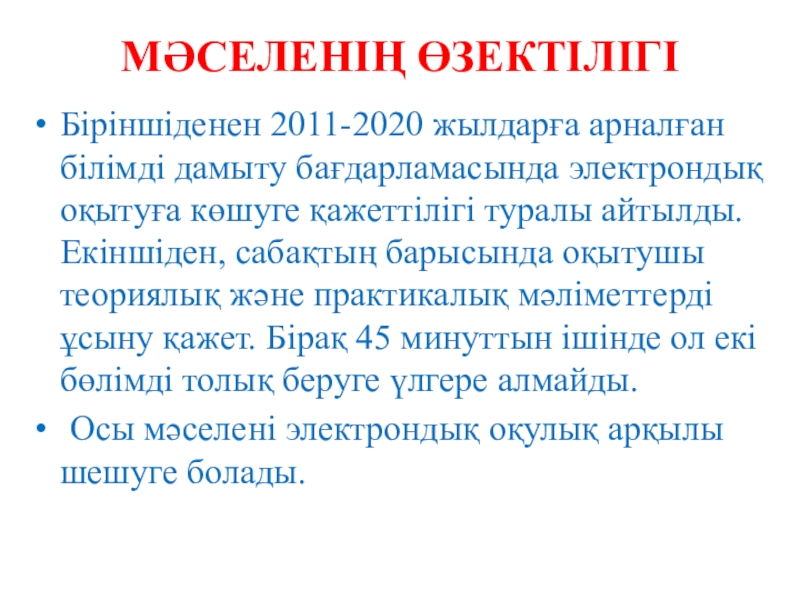 Слайд 4МӘСЕЛЕНІҢ ӨЗЕКТІЛІГІ