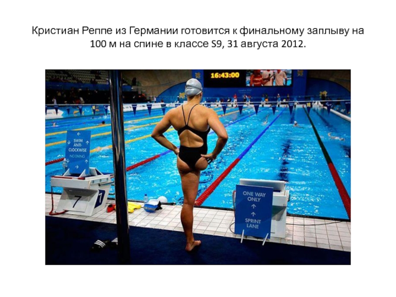 Слайд 39Кристиан Реппе из Германии готовится к финальному заплыву на 100 м