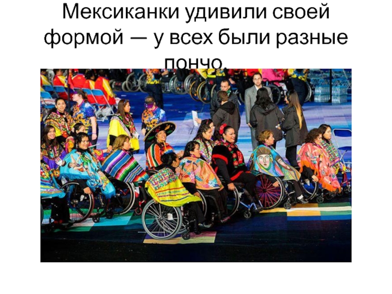 Слайд 13Мексиканки удивили своей формой — у всех были разные пончо.