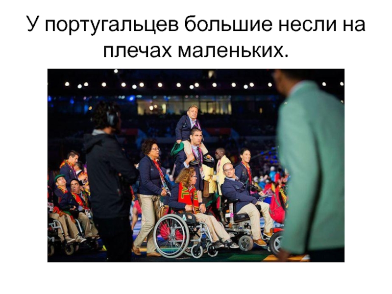Слайд 14У португальцев большие несли на плечах маленьких.