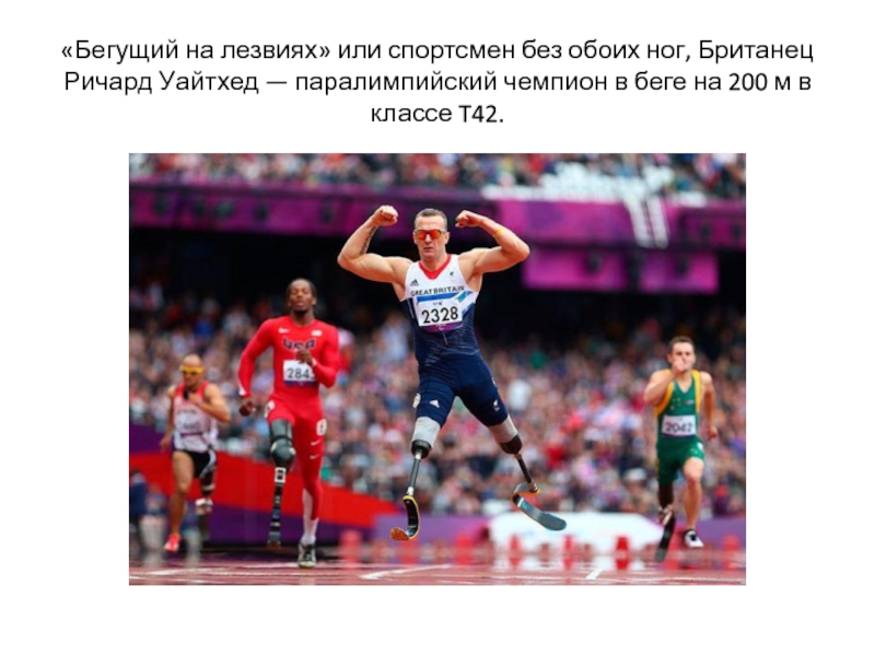 Слайд 36«Бегущий на лезвиях» или спортсмен без обоих ног, Британец Ричард Уайтхед