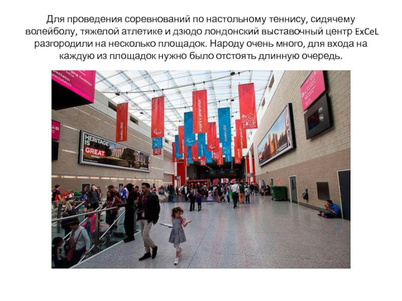 Слайд 30Сектор, где паралимпийцы играли в настольный теннис