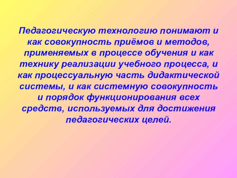 Слайд 2Педагогическую технологию понимают и как совокупность приёмов и методов, применяемых в
